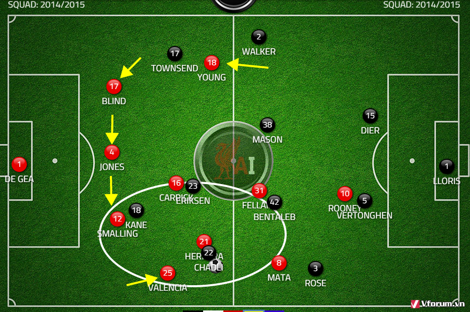 Câu trả lời là: họ cố tình làm vậy để bẫy các cầu thủ Tottenham di chuyển hoặc chuyền bóng vào khu vực khoảng trống để họ tổ chức Pressing rồi cướp bóng của đối thủ. Để làm được điều đó đội hình phải linh động sẽ rất khó khăn nếu đội thi đấu với đội hình cố đinh..Giờ các bạn đã hiểu vì sao United lại thay đổi đội hình liên tục trong trận đấu rồi nhỉ??